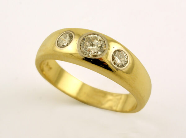 Bandring, Brillant ca. 0,32 ct, 2 Brillanten ca. 0,22 ct, G750 ca. 6,8 g, Ringweite 57