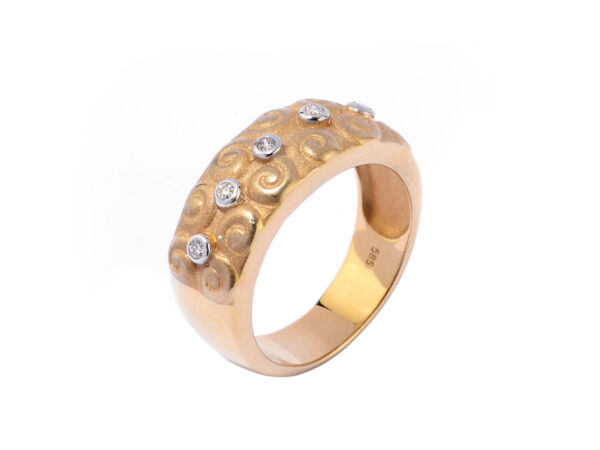 Ring, 5 Brillanten ca. 0,06 ct, G585 ca. 7,4 g, Ringweite 58